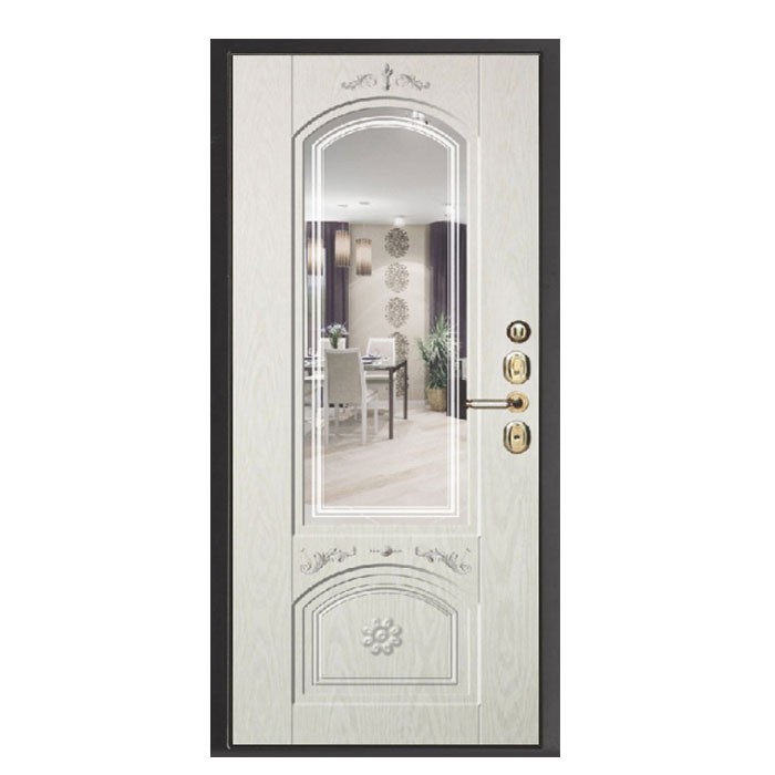 МДФ-плита обеспечивает хорошую стойкость к воздействию внешней среды, деформациям, мало подвержена горению и растрескиванию, что делает металлические двери с таким покрытием более привлекательными для покупателей с различным уровнем запросов.